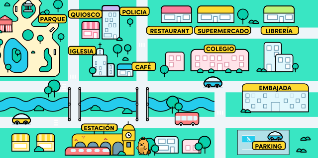 Lola está en la estación y quiere llegar al parque. ¿Qué tiene que hacer?