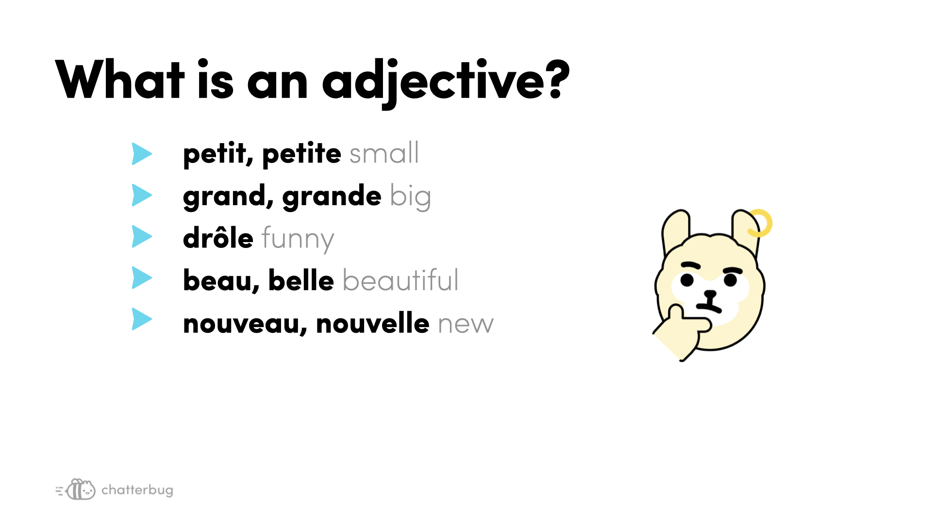 Let's learn how adjectives work and what the most common adjectives in French are!