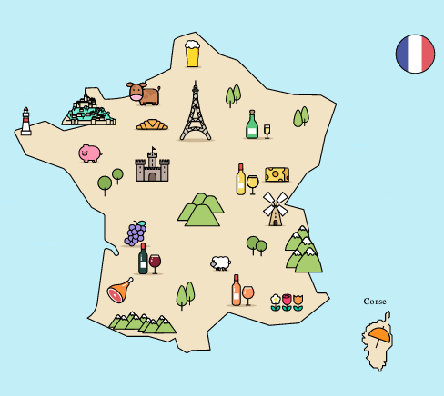 Ich besuche/besichtige Frankreich.