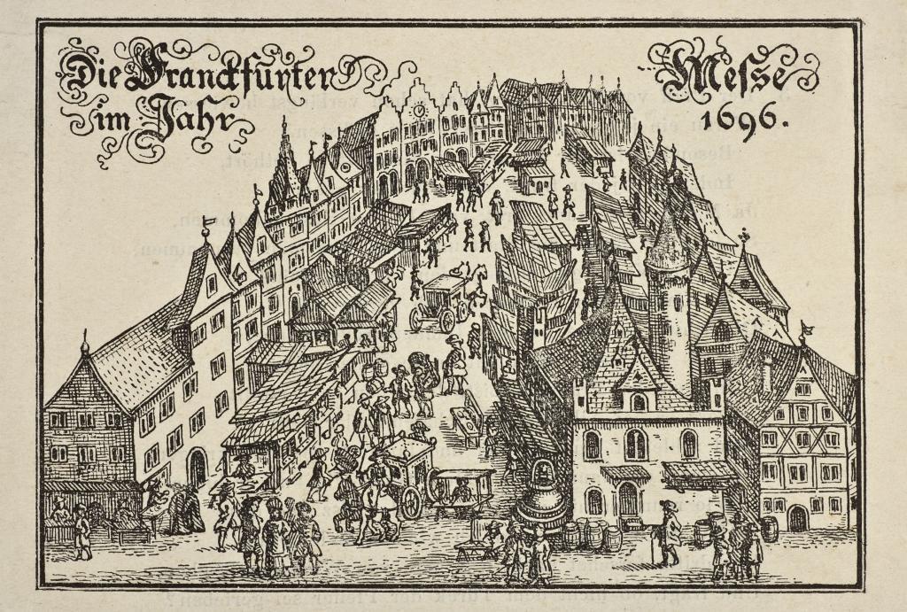 Menschen reisten nach Frankfurt, um ihre Waren zu zeigen und zu vergleichen.