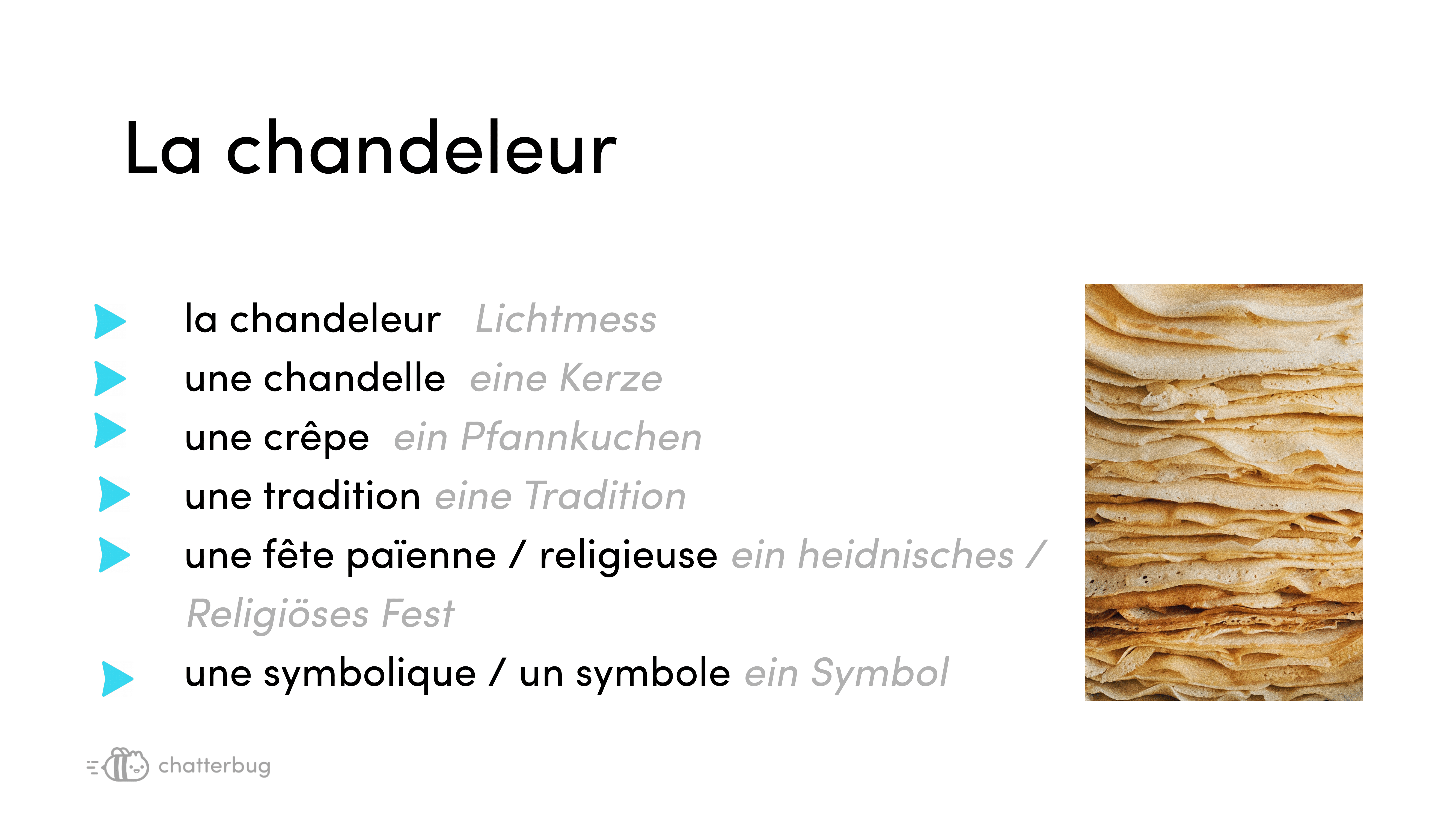 Magst du “Crêpes”? Wusstest du, dass es in Frankreich einen offiziellen Tag gibt, an dem sie gegessen werden? Linda erzählt uns mehr über die Geschichte und Traditionen, die hinter diesem berühmten Crêpe stecken.
