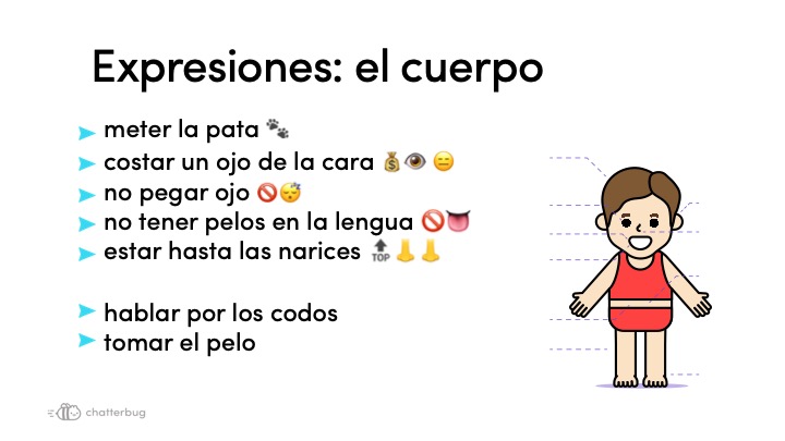 Aprende expresiones en español relacionadas con partes del cuerpo.