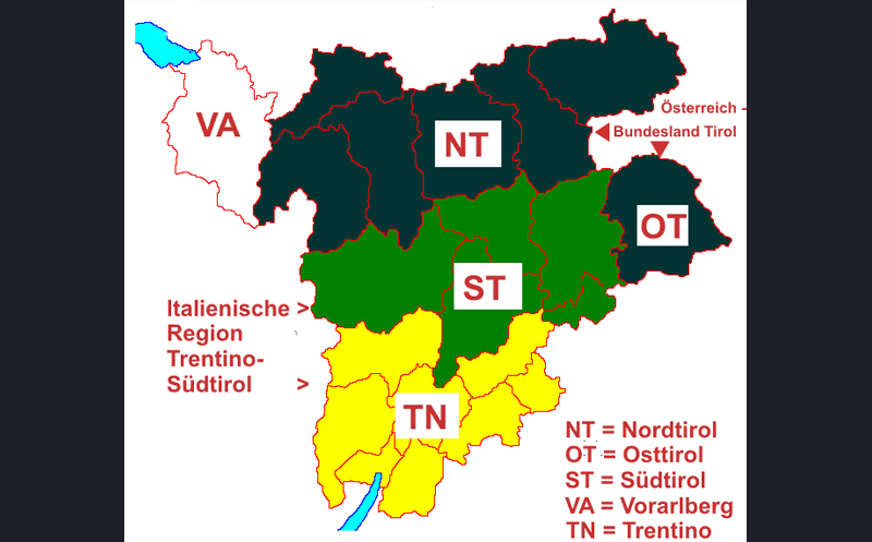 Gehörte einmal zu Österreich (dem Bundesland Tirol). Nach dem ersten Weltkrieg wurde das Land aber an Italien übergeben.