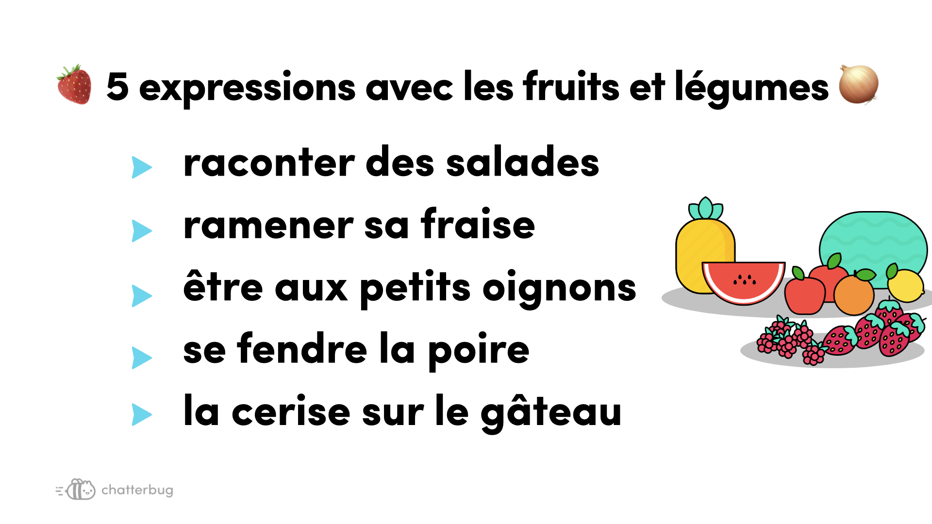 Découvrez des expressions courantes et sympa avec des fruits 🍓 et des légumes 🧅 ! 😆