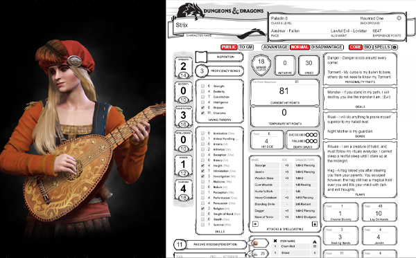 Der Charakter wird auf einem Stück Papier (Charakterblatt/Charakterbogen)