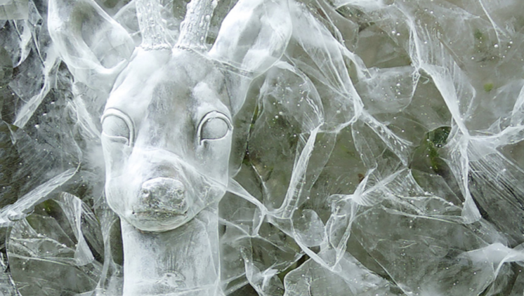 des animaux de verre au milieu des tombes du cimetière Miséricorde