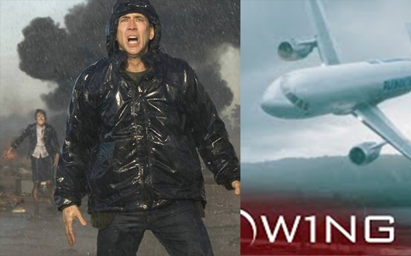 Nicholas Cage dreht sich gerade um, doch das Flugzeug kommt von der Seite.