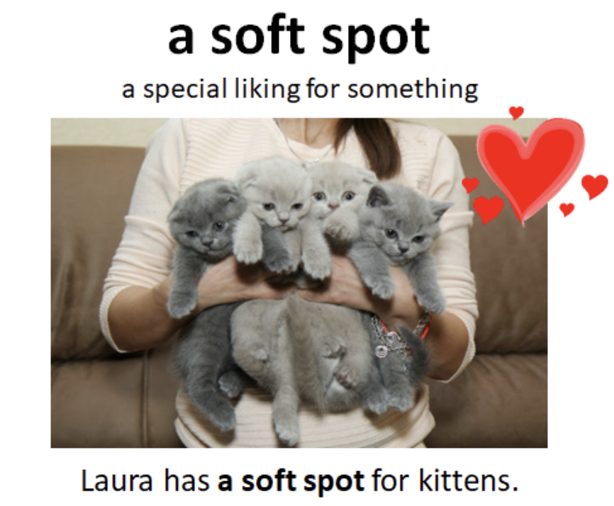 -Soft spot: a strong liking for someone or something