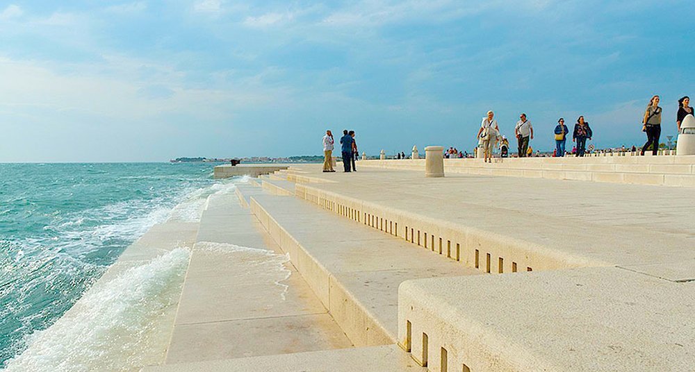 Órgano marino= fue diseñado por este arquitecto en el año de 2005 y está localizado en la ciudad de Zadar, en la región de Dalmacia, Croacia.