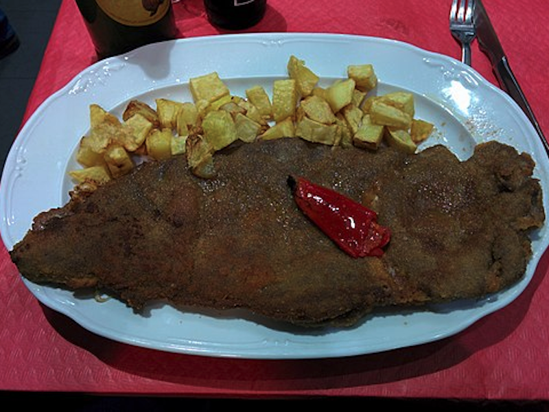 Consiste en dos filetes de ternera grandes, entre los cuales se coloca jamón serrano y queso. El conjunto se come frito y caliente tras ser empanado en harina, huevo y pan rallado y se suele servir con guarnición de patatas, pimientos o champiñones.