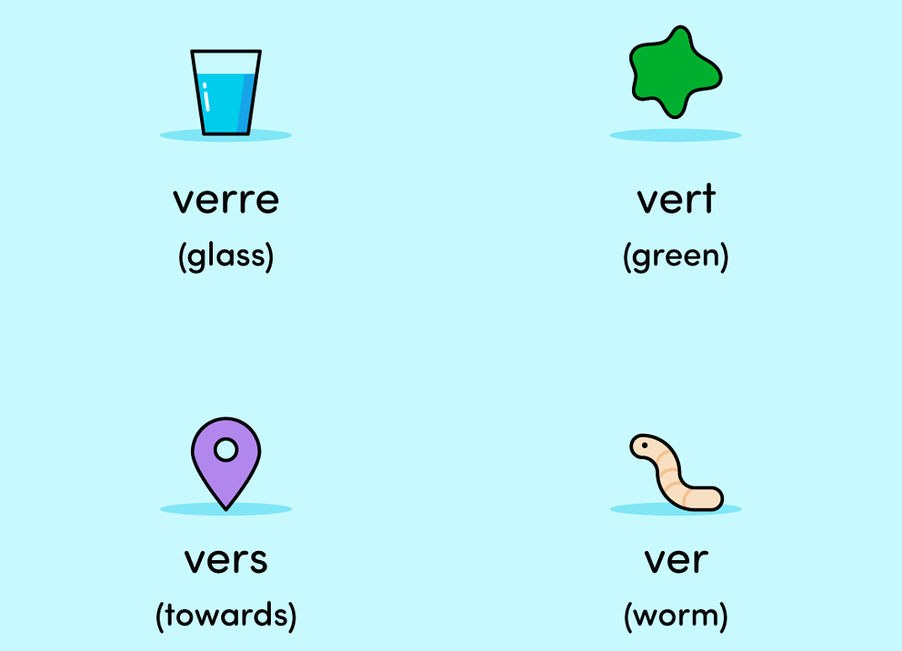 - prononciation de "verre", "vert" et "ver"