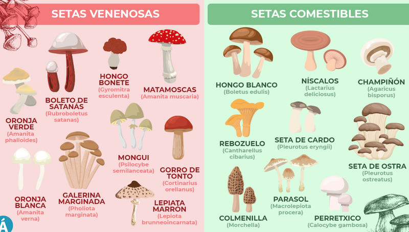 el peligro que conlleva no distinguir las comestibles de las venenosas.